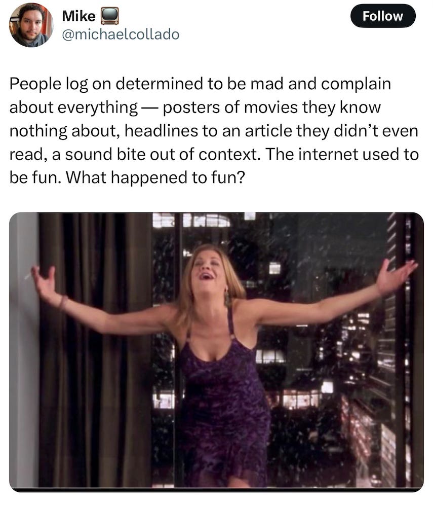Obviously, we can throw a fair amount of that blame onto the Broligrachy, but as I’ve mentioned before, the internet is made and unmade by us—we’ve built, and continue to build the internet. As much influence as the tech bros have, we can’t dump the entirety of the blame on them.