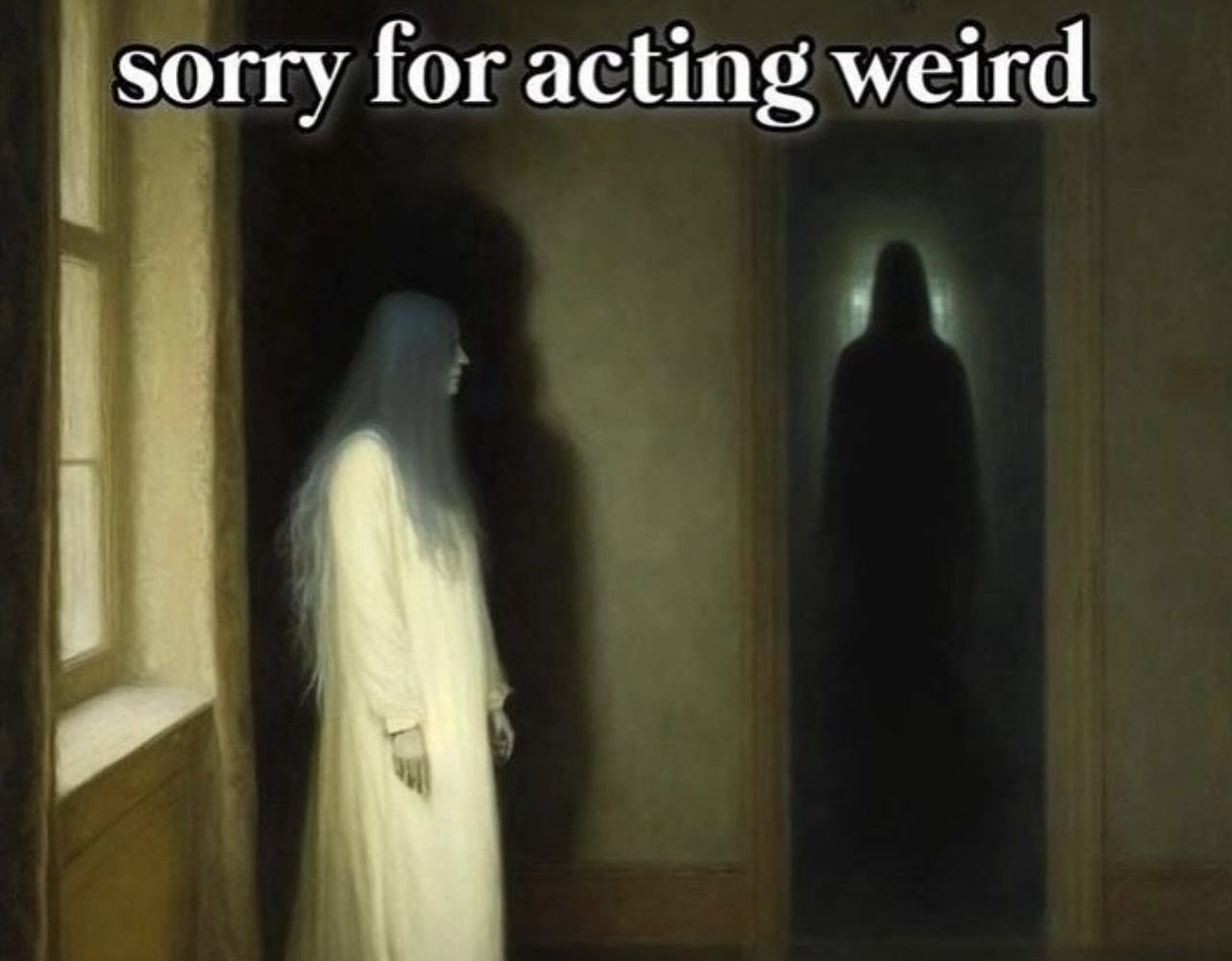 i feel like the agony coming from the feeling of losing yourself bit by bit to the slop filled scrollings is not dwelled on enough, so i think we try to be seen sharing this misery of heart. No you are not crazy.