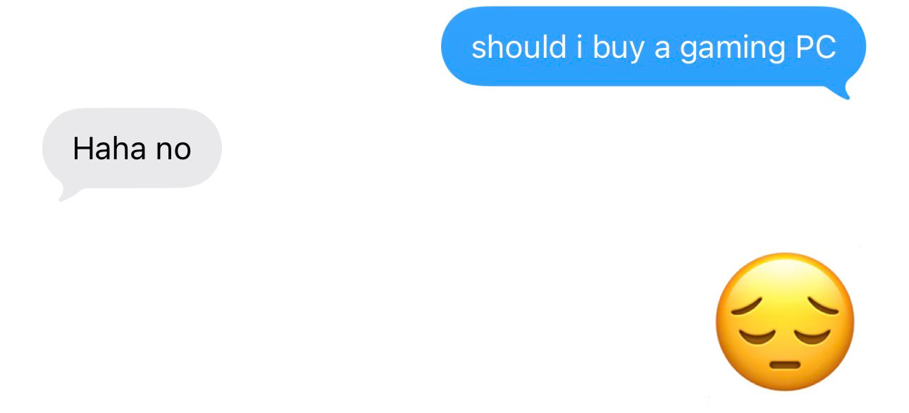 Yesterday I texted my boyfriend should I get a gaming PC? which means I should probably call my therapist. I’m bored and stuck inside and itching to fry my brain further. Winter asks nothing of me, and I still can’t give it that. My self-obsession gets more abstruse when I’m forced indoors, when I’m stripped of the ability to touch grass. A permeating numbness crawls through my veins; I coat checked my life force during daylight savings and lost my ticket. The world is too burdensome during these long, drawn-out months. Sincerity never feels earnest while I’m focused on survival. Besides, Winter is best approached with irony.